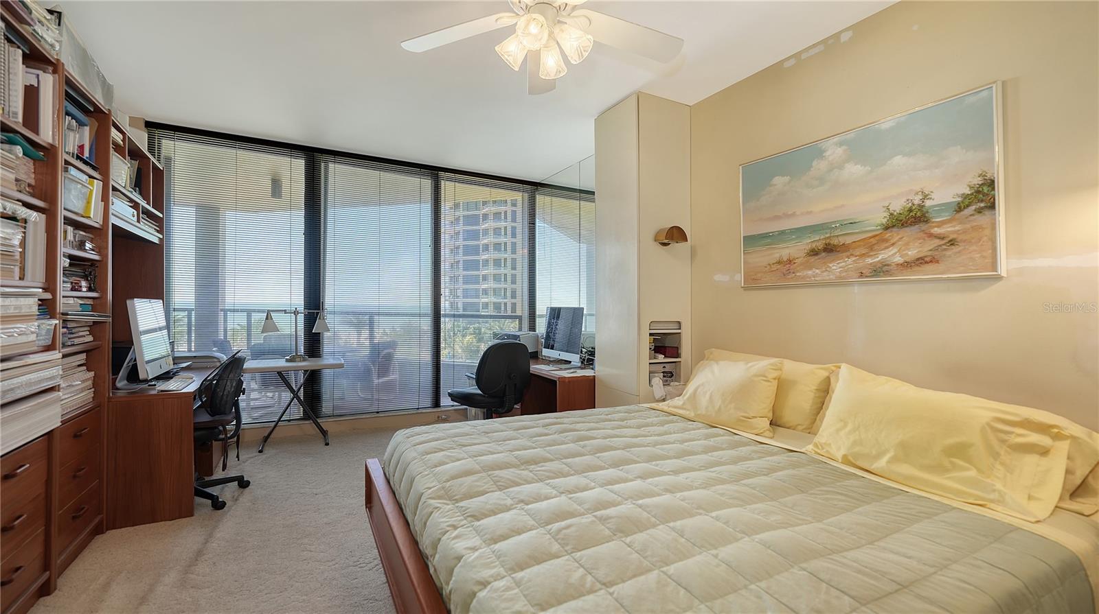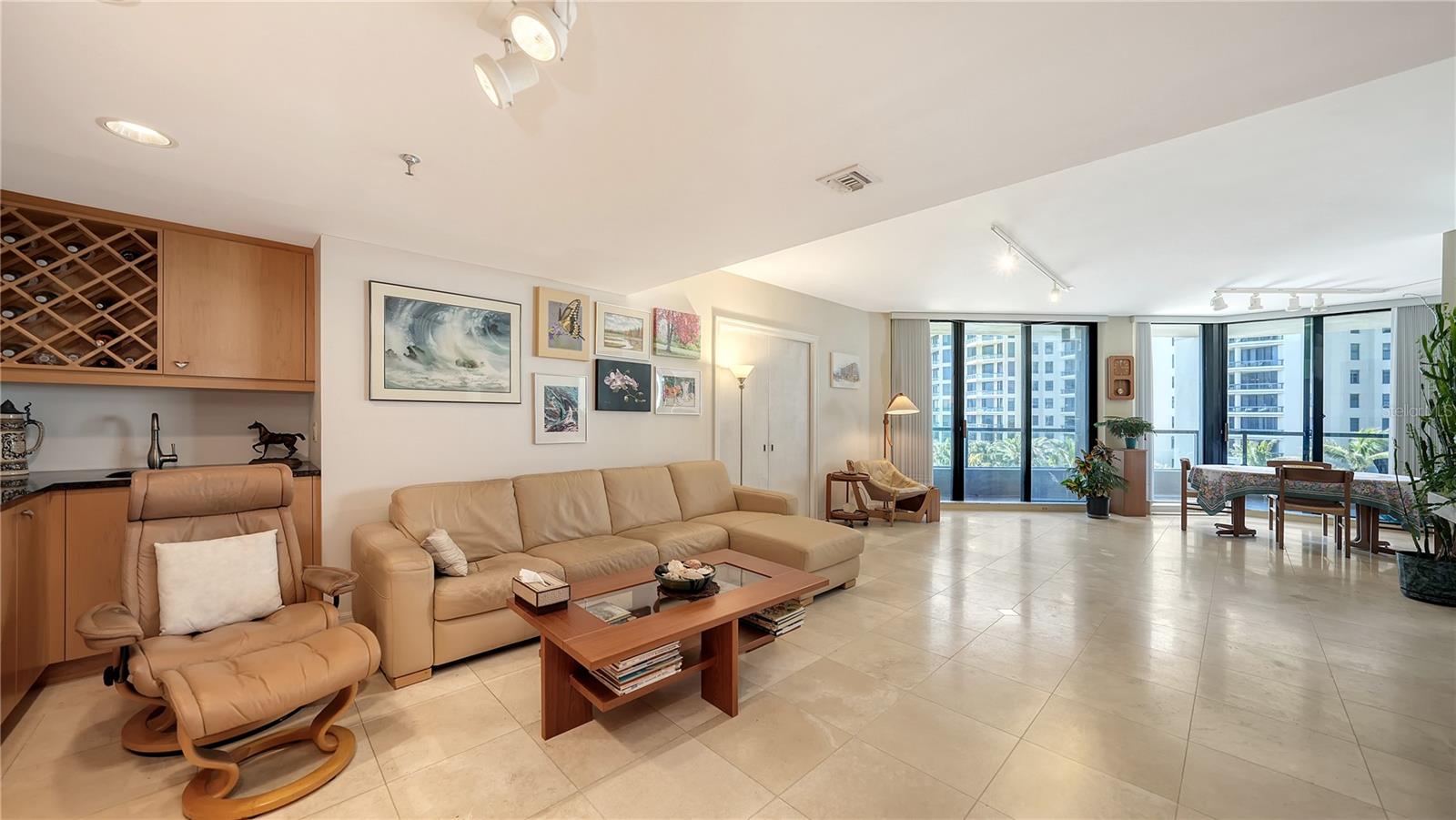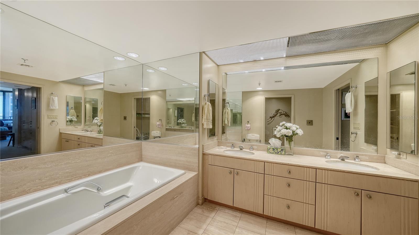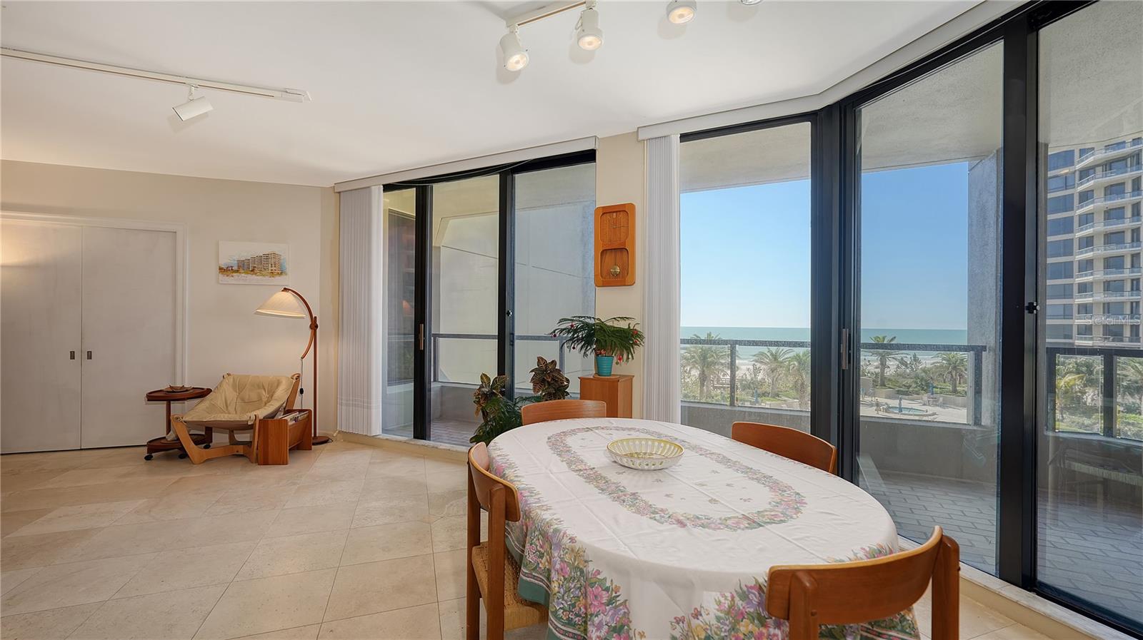 Discover this sunny coastal residence in the prestigious Promenade community. This two-bedroom residence spans more than 1,800 square feet, offering sweeping views of the Gulf of Mexico and lushly landscaped grounds. A sunset-facing terrace invites you to bask in gentle beach breezes while taking in breathtaking vistas of the sparkling water and tropical scenery. Step inside to an open-concept layout designed for comfort and style. Walls of floor-to-ceiling sliders allow natural light to pour into the spacious living areas. The galley-style kitchen offers plenty of storage and counter space, complete with a cozy dining area overlooking the Gulf. Adjacent to the great room, built-in cabinetry and a wet bar make entertaining effortless. The primary suite is a private sanctuary, positioned for maximum Gulf views and direct terrace access. His-and-her walk-in closets provide ample storage, while the en-suite bath features dual vanities, soaking tub, and separate glass shower. The split-bedroom layout ensures privacy, with the second bedroom offering its own walk-in closet and full en-suite bath. The Promenade is a premier, full-service community where residents enjoy a luxurious beachfront lifestyle. Recent renovations have enhanced its resort atmosphere, including a 24-hour manned guard gate, concierge service, and secure under-building parking. The amenities are unparalleled, with a state-of-the-art fitness center, four Har-Tru tennis courts, social gathering spaces, and a Gulf-front sundeck with shaded gazebos, grilling areas, and ample seating. A heated swimming pool and spa, along with private beach access and charming tiki huts, complete the experience. Located on the southern end of Longboat Key, The Promenade offers convenient access to the vibrant arts, dining, and shopping scene of St. Armands Circle, as well as downtown Sarasota's cultural attractions. Whether you're looking for a year-round residence or a vacation escape, this Gulf-front retreat delivers the perfect balance of luxury and relaxation.